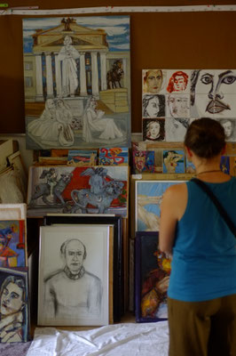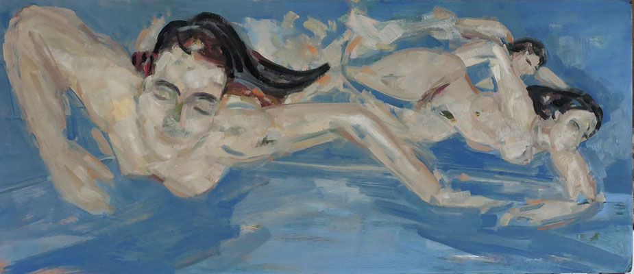 Mehrere Badeszenen, angeregt durch einige Skulpturen in der Abguss-Sammlung Marburg, sowie Urlaubserlebnisse "Am Teich-Dresden" entstehen auf verschiedenen Leinwandformaten und mit verschiedenen Techniken- Ölmalerei und Pastellfarben.